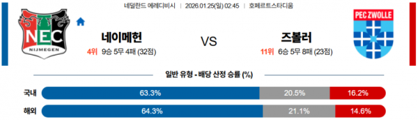 2026-01-25 02:45 에레디비지 NEC 네이메헌 FC 즈볼레