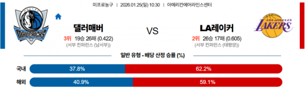 2026-01-25 10:30 NBA 댈러스 매버릭스 LA 레이커스