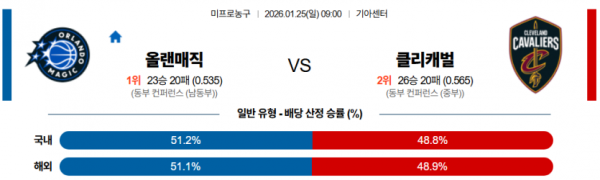 2026-01-25 09:00 NBA 올랜도 매직 클리블랜드 캐벌리어스