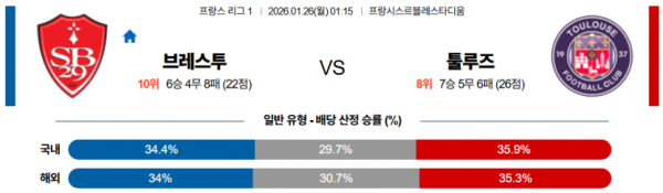 2026-01-26 01:15 리그앙 스타드 브레스트 29 툴루즈 FC