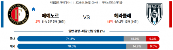 2026-01-26 00:45 에레디비지 페예노르트 헤라클레스 알멜로