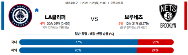 2026-01-26 11:00 NBA LA 클리퍼스 브루클린 네츠