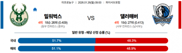 2026-01-26 09:00 NBA 밀워키 벅스 댈러스 매버릭스
