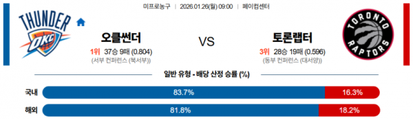 2026-01-26 09:00 NBA 오클라호마시티 썬더 토론토 랩터스