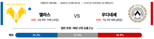 2026-01-27 04:45 세리에 A 엘라스 베로나 FC 우디네세 칼초