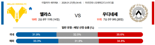 2026-01-27 04:45 세리에 A 엘라스 베로나 FC 우디네세 칼초