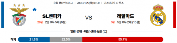 2026-01-29 05:00 UEFA 챔피언스리그 SL 벤피카 레알 마드리드