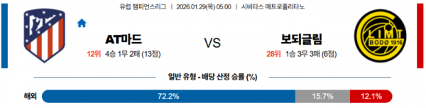 2026-01-29 05:00 UEFA 챔피언스리그 AT 마드리드 FK 보되/글림트
