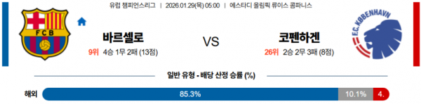 2026-01-29 05:00 UEFA 챔피언스리그 FC 바르셀로나 FC 코펜하겐