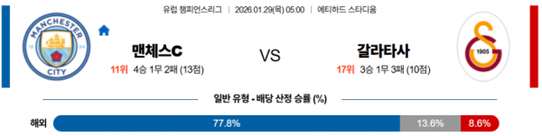 2026-01-29 05:00 UEFA 챔피언스리그 맨체스터 시티 갈라타사라이