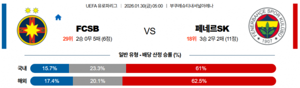 2026-01-30 05:00 UEFA 유로파리그 FCSB 페네르바체