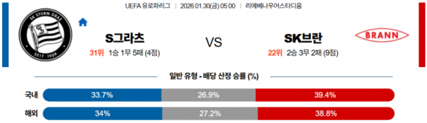 2026-01-30 05:00 UEFA 유로파리그 슈투름 그라츠 SK 브란