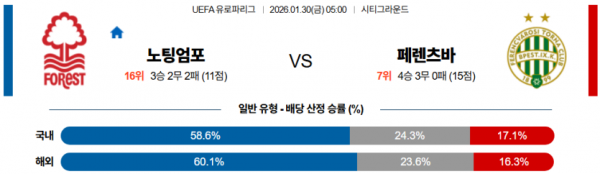 2026-01-30 05:00 UEFA 유로파리그 노팅엄 포레스트 페렌츠바로시 TC