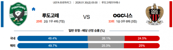 2026-01-30 05:00 UEFA 유로파리그 PFC 루도고레츠 라즈그라드 OGC 니스