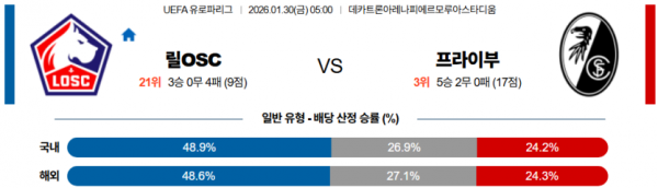 2026-01-30 05:00 UEFA 유로파리그 릴 OSC SC 프라이부르크