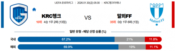 2026-01-30 05:00 UEFA 유로파리그 헹크 말뫼 FF