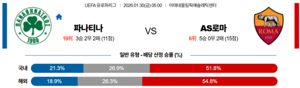 2026-01-30 05:00 UEFA 유로파리그 파나시나이코스 AS 로마