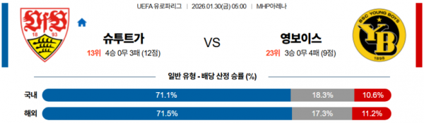 2026-01-30 05:00 UEFA 유로파리그 VfB 슈투트가르트 BSC 영 보이즈