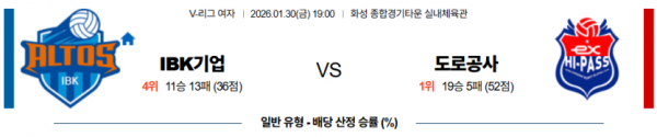 2026-01-30 19:00 V-리그 여자부 IBK 기업은행 한국 도로공사