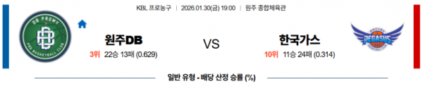 2026-01-30 19:00 KBL 원주 DB 대구 한국가스공사
