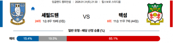 2026-01-31 21:30 잉글랜드 챔피언쉽 셰필드 웬즈데이 렉섬