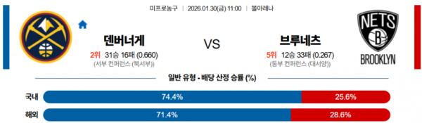 2026-01-30 11:00 NBA 덴버 너겟츠 브루클린 네츠
