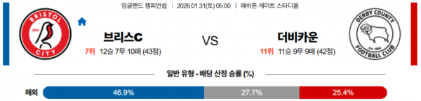 2026-01-31 05:00 잉글랜드 챔피언쉽 브리스톨 시티 FC 더비 카운티