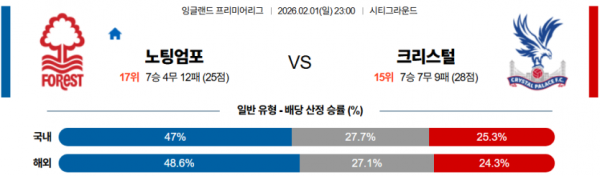 2026-02-01 23:00 프리미어리그 노팅엄 포레스트 크리스탈 팰리스