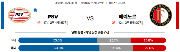 2026-02-01 22:30 에레디비지 PSV 에인트호벤 페예노르트