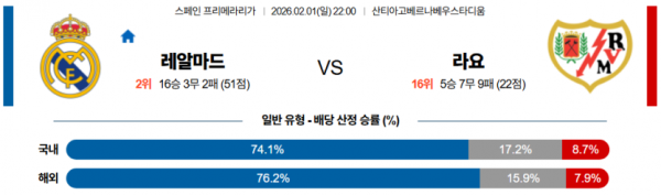 2026-02-01 22:00 라리가 레알 마드리드 라요 바예카노