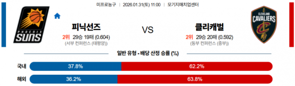 2026-01-31 11:00 NBA 피닉스 선즈 클리블랜드 캐벌리어스