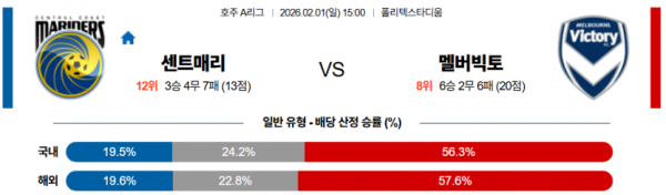 2026-02-01 15:00 호주 A리그 센트럴 코스트 마리너스 FC 멜버른 빅토리 FC