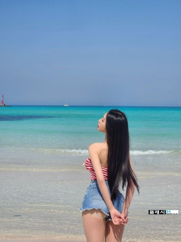 바닷가에서 완벽한 포즈 취하는 동그란