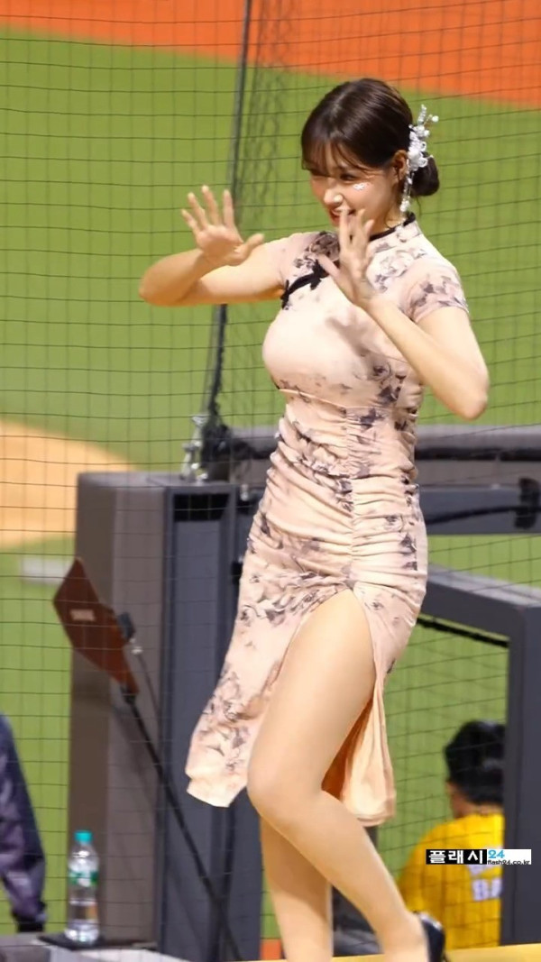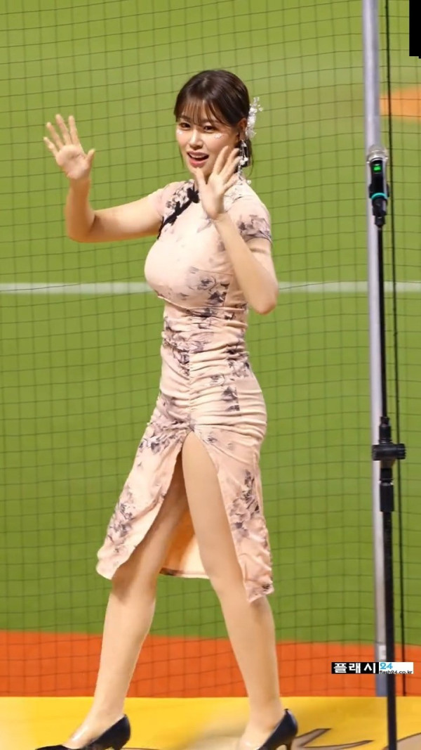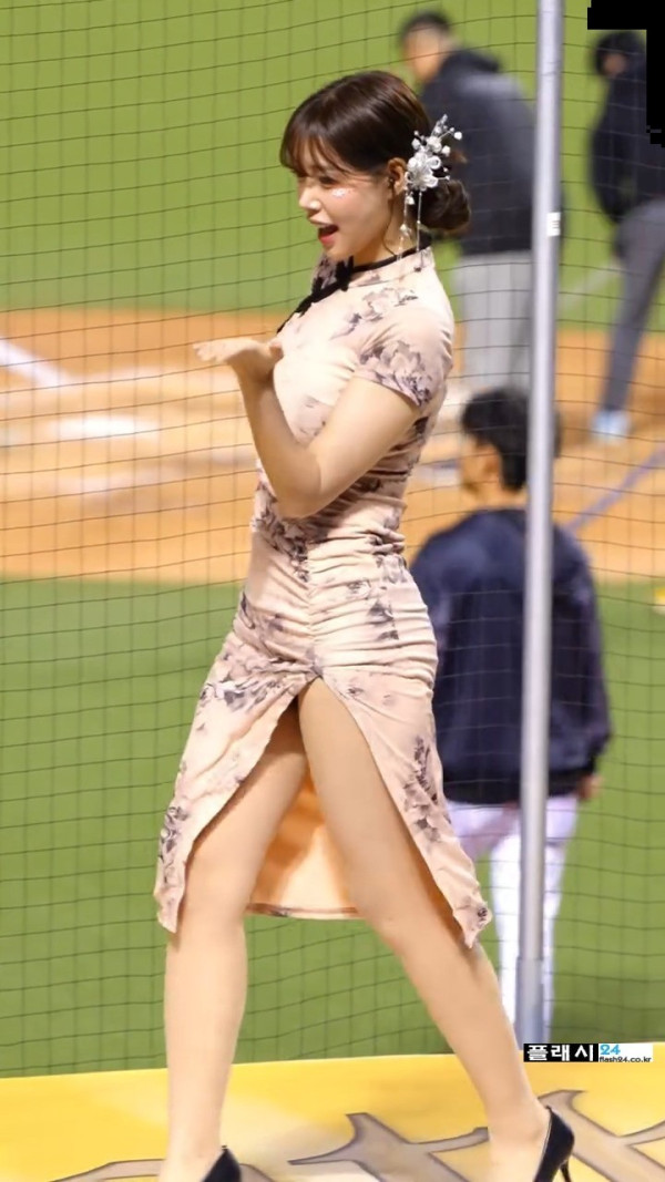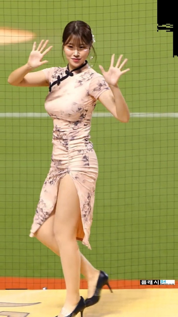 입장하는 김도아 치어리더 옆트임 치파오