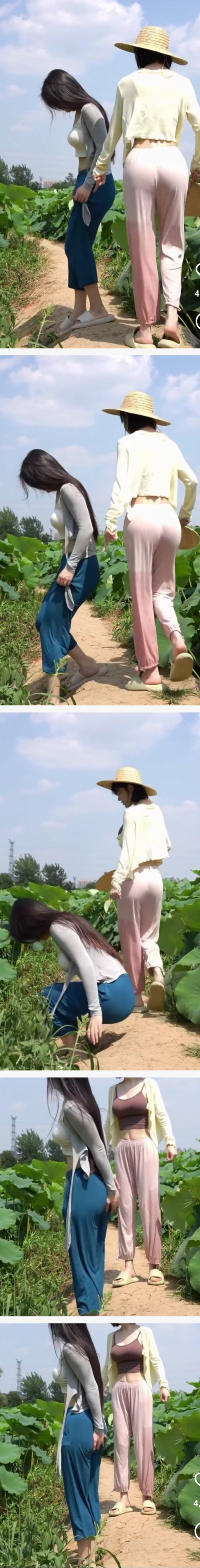 복숭아 농사 체험중인 여대생 둘