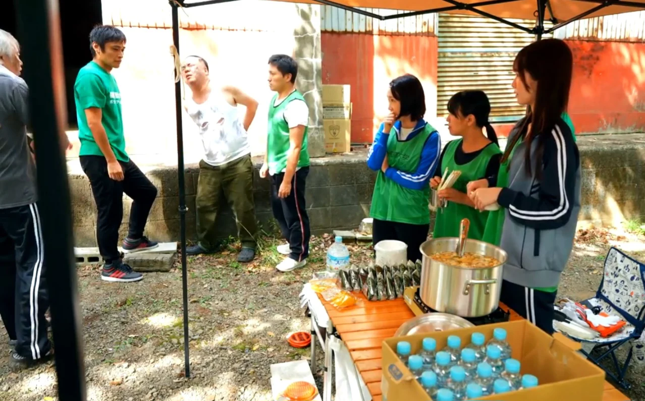 드디어 시작된 배식 시간. 오랜만에 따뜻한 밥과 국을 눈앞에 둬서 그런지 기분이 좋아보이는 아재들이다.