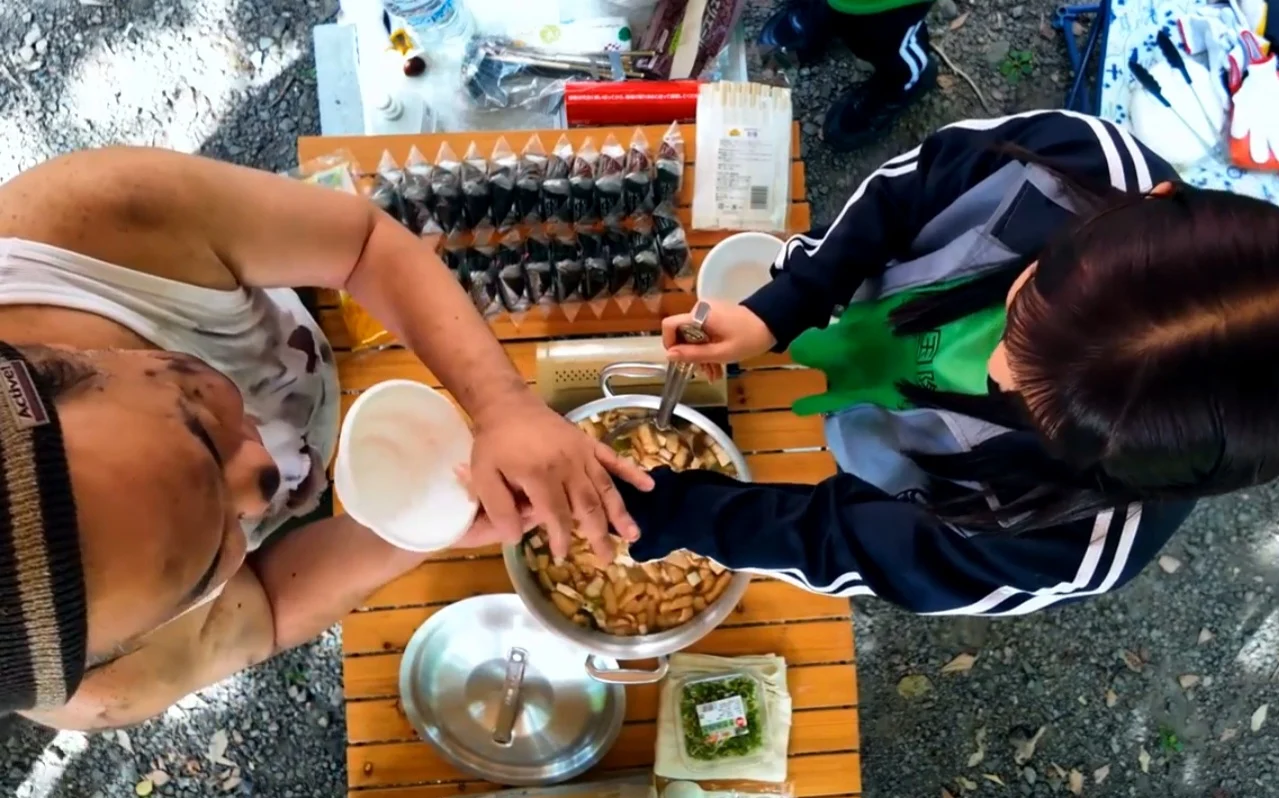 이렇게 먹음직스런 음식들을 차려놓고 어떤 봉사를 하려는 걸까?
