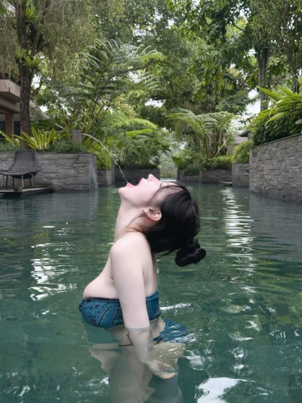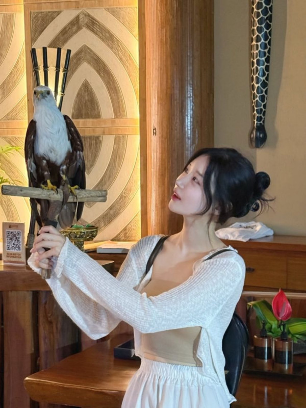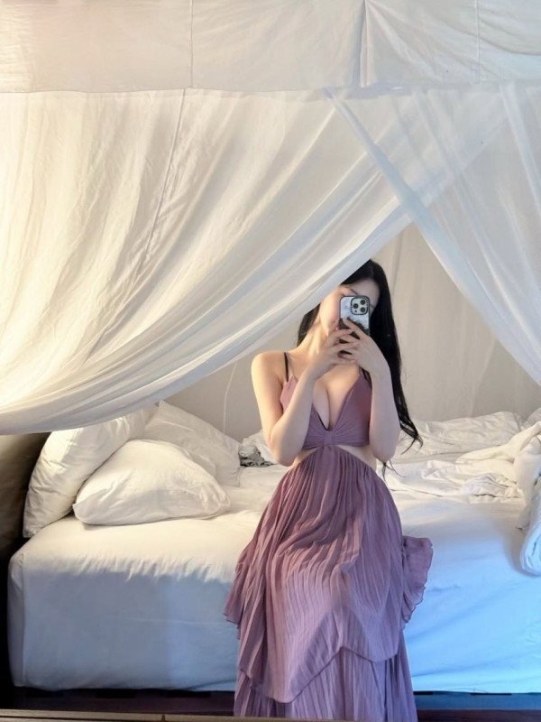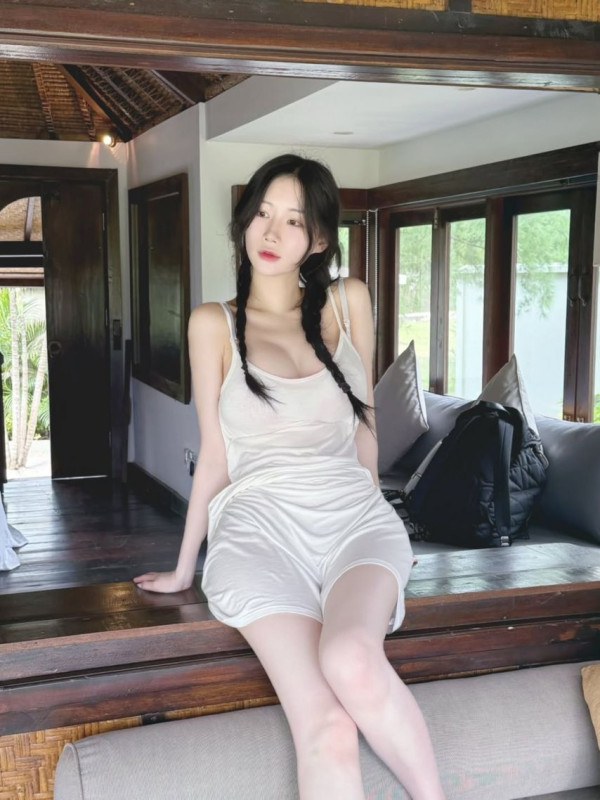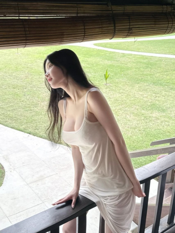 발리에서 끈나시 원피스 뽀얀 피부 가슴골