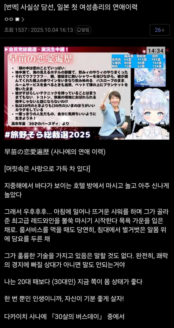 버튜버갤러리에 올라온 일본 총리의 연애사정