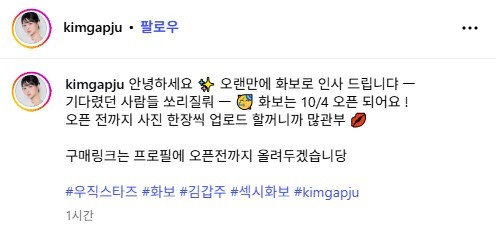 옷 한 장 걸치고 있는 김갑주 인스타 신작