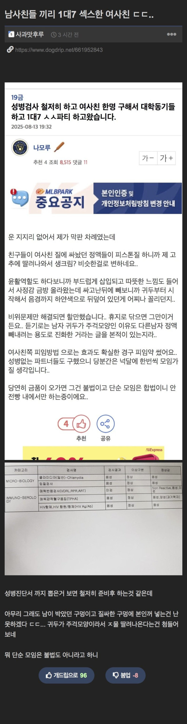 혼자서 남자들 7명과 야스한 여사친 ㄷㄷ