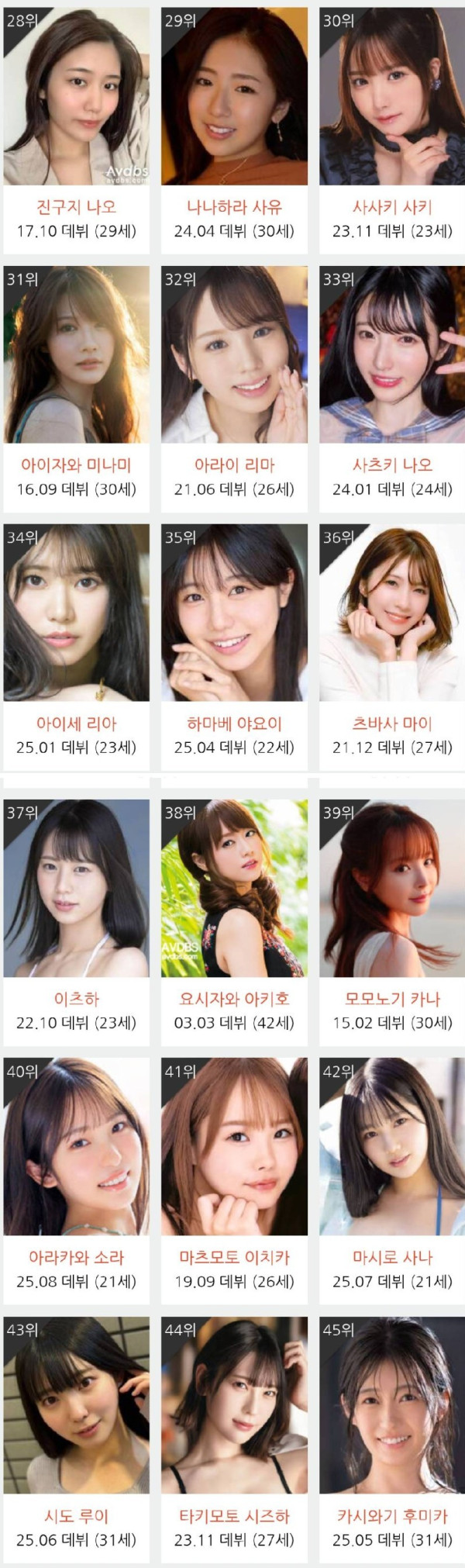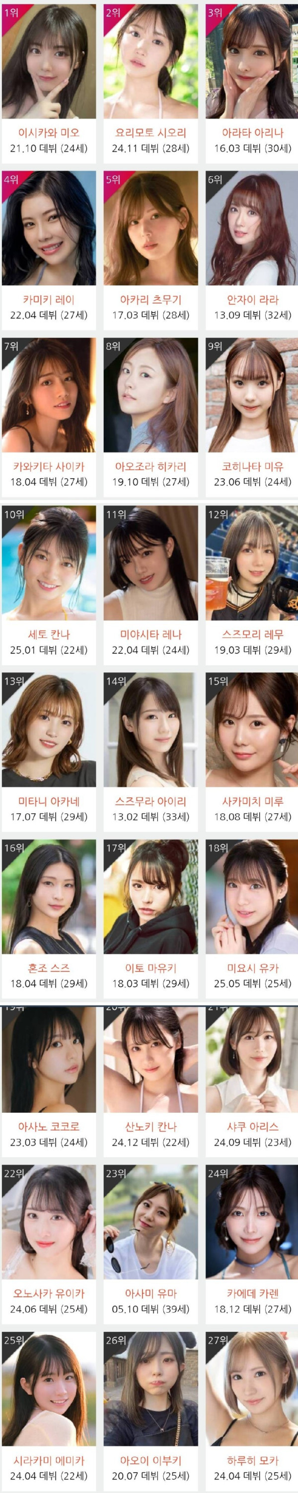 2025년 10월 AV 여배우 종합 순위