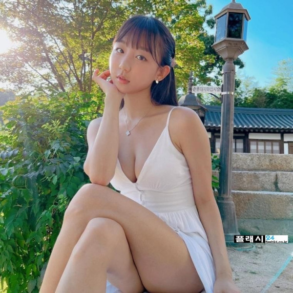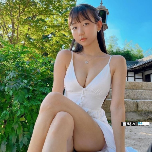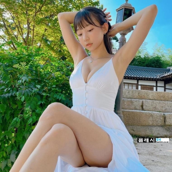 포즈취하는 표은지 흰 끈나시 원피스