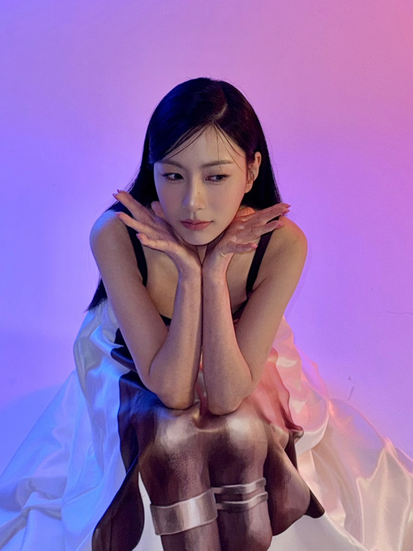 화보 촬영중에 셀카 찍는 에이핑크 오하영 끈드레스 아찔한 가슴골