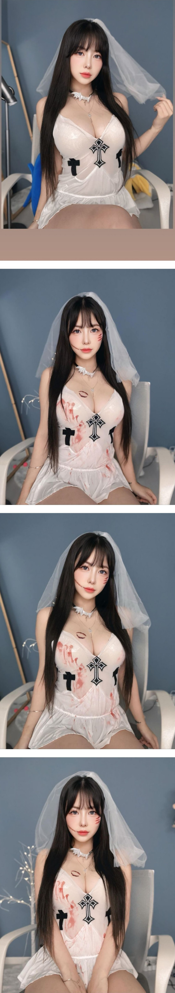 가슴에 키스마크.. 유령신부 코스프레