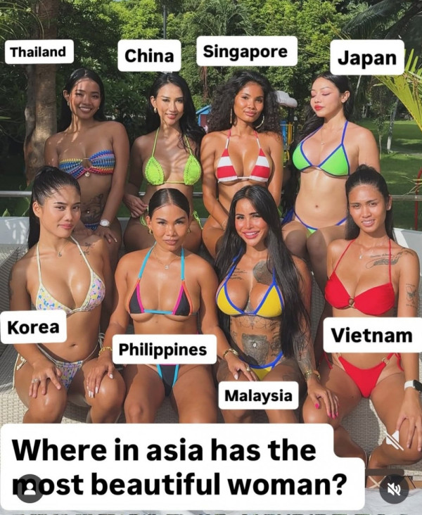 매칭해놓고 이 아시아 여성들 중 누가 가장 아름답나요. 라고 묻는 글.
