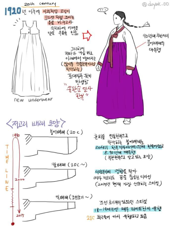 하기위해 서양식으로 치마를 어깨에 맬수있도록 개량을하게된다