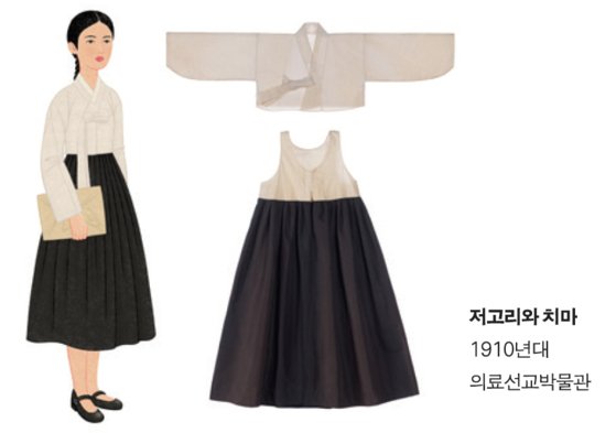 하기위해 서양식으로 치마를 어깨에 맬수있도록 개량을하게된다