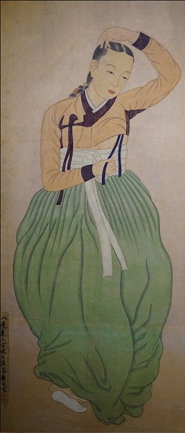 아는 사람들은 알겠지만 한복은 시대가 지날수록 점점 짧아져서 19세기엔 가슴을 다 가릴수 없을 정도까지 짧아지게된다