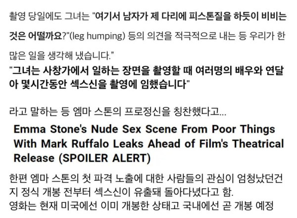 <가여운 것들> 미국 개봉 전에 진행된 인터뷰라 해당 인터뷰에서 말하는 영화는 <가여운 것들>임.